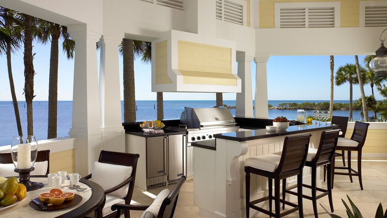 En la cocina de verano, también puede organizar un lugar que brinde la oportunidad de comer las parrilladas. Lo ideal es que el estilo del mobiliario coincida con estilo interior elegido en la cocina. Cuida detalles como servilletas , vajillas ,bombillos u otros accesorios decorativos.
