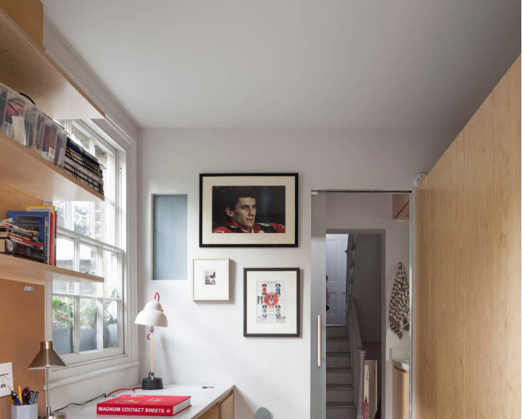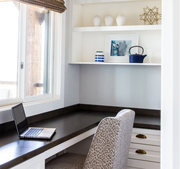 Es necesario no olvidarse de los sistemas de almacenamiento y seguir las reglas de ergonomía, para que el proceso de trabajo no solo sea productivo, sino que también sea seguro para la salud (en el momento y en el futuro). Para organizar dos lugares de trabajo, necesita mucho menos espacio, solo coloque una consola de mesa en la pared (la ausencia de patas ayudará cuando coloque a dos personas detrás de la superficie de trabajo) e instale un par de sillas. Para computadoras modernas o computadoras portátiles (tabletas), una consola de trabajo estrecha es suficiente.